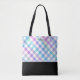 Iridescent Pink and Blue Gingham Pattern with Monogram Tote Bag