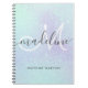 This monogrammed notebook features a faux iridescent glitter sparkle design with modern script font. Personalize it with your name and monogram.
