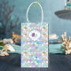 Make waves at your mermaid-themed celebration with this dazzling birthday gift bag! Covered in a watercolor-style mermaid scale pattern in shades of purple, teal, and seafoam green, this sparkling design adds a magical underwater shimmer to any present. The front features a custom label shaped like a clam shell, perfect for personalizing with your child’s name and event. Ideal for birthday gifts, party favours, or matching themed supplies, this bag brings the ocean fantasy to life — one splash at a time! Search ID1144 to see coordinating products in this design set.