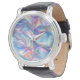 A blue, orange, gold and purple iridescent, metallic geometric design perfect for a watch.