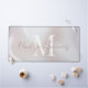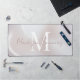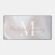 Personalize this elegant white initial monogram with iridescent pearl background desk mat.