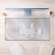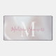 Personalize this elegant white initial and pink script name monogram with iridescent pearl background desk mat.