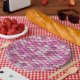 Great accent for an outdoor summer party. Bright colors, vibrant floral design