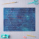 Iridescent cursive writing sits on a background of light and dark intertwined blue. Great for decoupage artwork, paper crafts, or gift wrapping.