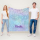 Iridescent Turquoise Silver Faux Glitter Monogram Fleece Blanket