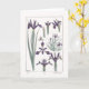 A blank greeting card with a botanical illustration of iris flowers in purple, by the French artist Maurice Pillard Verneuil. A lithograph using the pochoir method of hand colouring drawings, which has been digitally enhanced and altered.