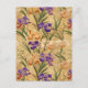 Keep in touch with friends and loved ones with a beautiful chiyogami pattern postcard featuring irises on a gold background.