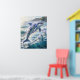 A radiant iris dolphin leaps through sparkling waves where ocean joy meets floral elegance. Realistic dolphin anatomy blends with iris petals, sleek fins, flowing botanical textures, and luminous accents in blue, violet, aqua, silver, and pale gold. Rainbow mist, sea spray, coastal cliffs, seabirds, and layered water reflections create an uplifting cinematic scene full of movement. This premium fantasy marine design brightens bathrooms, beach homes, nurseries, or gift collections. Perfect for dolphin lovers, coastal decor fans, and joyful ocean-inspired interiors.