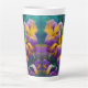 Iris Floral Purple and gold blue green leaves Latte Mug
