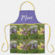 Iris Floral Shabby Chic Purple Kitchen Apron, with a fully customizable name. Designed from my original garden photo & writing.