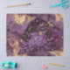 Warm purples with golden accents in a rich layering of fluid paint drips and artistic splashes.