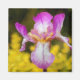 A single pink iris against a green background. The original is a miniature oil painting by Kathie Miller