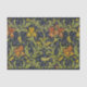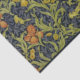 This design features a print of a fabric design created by the British artist William Morris (1834–1896), who is associated with the Arts and Crafts Movement. It depicts blue and orange iris flowers in an elegantly symmetrical pattern. The flower is named after Iris, who was the Greek goddess of the rainbow and a messenger for the Olympian gods, carrying messages down to humanity. The leaves and stems of the iris plants are depicted in blue and green. There are a few yellow birds perching on some of the plants' foliage. The original pattern was designed by William Morris in 1887.