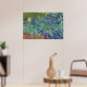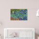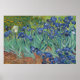 Van Gogh began painting "Irises" shortly after arriving at the asylum in May 1889, working from the hospital garden. This piece lacks the intense emotion present in his later works. Van Gogh described painting as "the lightning conductor for my illness," believing it helped him stave off madness. The painting was likely influenced by Japanese ukiyo-e woodblock prints, as were many of his and other contemporary artists' works. The influence is evident in the strong outlines, unusual perspectives, including close-ups, and the flat, local colour that doesn't follow the light's fall. "Irises" exudes a sense of softness and lightness, brimming with life but free from tragedy.