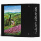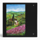 Tuscany landscape,colourful ,vibrant ,expressive beauty of Italian countryside and purple violet iris fields ,beautiful Summer flora in bright green,yellow ,brown,blue ,white colours,meadows,flower field,cypress and olive trees,rustic old farm house under the blue sky and white clouds .Acrylic painting on canvas .