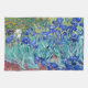 Irises (1889) Vincent van Gogh. Cute summer landscape. Blue irises bloom in a flowerbed in a green garden. Reproduction of famous works of art images in the public domain.