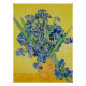Irises (1890) Vincent van Gogh. Lovely positive still life. Large yellow vase with a bouquet of blue irises on a yellow background. Reproduction of famous works of art images in the public domain.