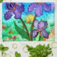 Perfectionnez pour la cuisine ou assorti comme une salle de bains a placé avec un support de brosse à dents, un distributeur de savon, un tapis de bain, des serviettes de peluche, et un rideau en douche pour une évasion de détente à la nature comportant ma couleur d'eau originale dépeignant des fleurs pourpres d'iris et un papillon de monarque au lever de soleil.