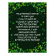 This beautiful Irish Blessing greeting poster features the timeless Gaelic prayer, "May the Road Rise Up to Meet You." The design showcases vibrant green shamrocks on a dark green background, symbolizing good luck and Irish tradition. It is perfect for St. Patrick's Day, weddings, farewells, or any occasion to send warm wishes of love and good fortune.