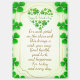 Visual Elements: The card features numerous green shamrocks, including a heart shape made of shamrocks near the top center. The overall color scheme is green and gold.