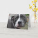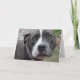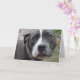 This gorgeous birthday greeting card show a stunning image of a Irish Blue Staffordshire Bull Terrier dog on the front. Inside the birthday card it has in black ink 'Have a very Happy Birthday!' in the centre of it. On the back of the card it has a smaller version of the dog picture which is on the front of the card. This is a beautiful card, ideal for a friend or loved one.