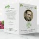 Irish Mass program pamphlet with elegant watercolors of a Celtic knot and green shamrocks. (Supplied flat for you to fold). Show a photo on the cover in a faux gold oval frame (not foiled), inside shows the order of service and eulogy. A beautiful, modern and respectful design for your loved one's memorial service. You can also add a favorite photograph inside.