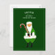 Funny Irish holiday design featuring Irish Santa Claus wearing a shamrock and carrying a candy cane.