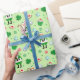 Creative Irish holiday gift wrap featuring Santa surrounded by shamrocks and Christmas treats.