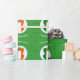 Irish flag Christmas angel personalized wrapping paper. Design features an angel, dressed in the flag of Ireland, inside a white circle of squiggly squares. Background is green squiggly squares. Personalized with name, year, and holiday, or whatever you wish. Wrap your holiday gifts and share your pride at the same time.