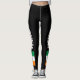 Irish flag custom leggings for St Patricks Day. Trendy clothing for women and teen girls. Personalizable tights with custom colour background and flag of Ireland. St Pattys Day pride printed pants for fashion shoot, workout, gymnastics, dance, gym, fitness, training, yoga, costume party, cheerleading, teams, running and other sports. Make your own unique outfit. Add your own name, monogram or funny quote optionally. Fun gift ideas for her. Green white orange colours.