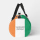 Irish Tricolour Flag duffle bag - using exact Irish government approved colors. Designed to show flag in correct sequence of Green, White and Orange from left to right on either side and each end. Text on back, front and each side can be personalized or left blank. This is probably the most "Irish" Irish duffle bag you can by. Designed in the heart of the West of Ireland. Be proud of Ireland, be proud of your flag, be proud of your bag.
