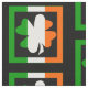 On this fabric, the traditional green, white, and orange stripes of the flag of Ireland fill up a traditional shamrock shape. The shamrock is framed in dramatic black, and bordered by the Irish flag stripes, and then repeated as an offset tiled pattern across the surface. Show your Irish side in bold style!