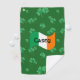 Erin Go Bragh! Show your Celtic pride with the wave of this Irish flag showered with shamrocks on this personalized golf towel. Fore!