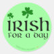 Be Irish for a day with these St. Patrick's Day funny stickers. They read, "Irish for a Day," with green shamrocks in the design.