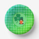 Irish Gnome Shamrock St Patrick's Paper Bowls. Funny Irish gnome standing by a giant green plaid shamrock. Personalize this template with text.