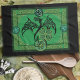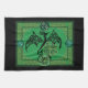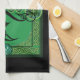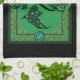 Tribal black dragon with Celtic knot work wings. Shades of green and Celtic knot work all behind and around the dragon and four leaf clover.