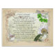 A beige frame with flowers, butterflies, and clovers contains an Irish House Blessing. "Bless This House O Lord, we pray. Make it safe by night and day. Bless these walls so firm and stout, Keeping want and trouble out. Bless the roof and chimney tall, Let thy peace lie over all. Bless the doors that they may prove Ever open to joy and love. Bless the windows shining bright, Letting in God's heavenly light. Bless the hearth a-blazing there, With smoke ascending like a prayer. Bless the people here within"