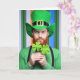Irish man with four-leaf clovers for St. Patrick's Day.