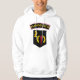 Classic hooded sweatshirt features the insignia of the Irish Army Rangers.
