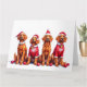 Stunning and energetic Irish Red Setters, known for their beautiful flowing mahogany coats, look festive and elegant in their Christmas Santa outfits. A perfect design for Setter enthusiasts.