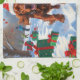 Irish Red Setter Running Snow with Christmas Hat Kitchen Towel