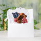 USA! America! Shout your pride with this awesome flag Patriotic background with this AKC dog breed Irish Setter in the forefront. Show your pride with this design on a t-shirt, mug, and much, much more!