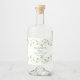Liquor bottle label bordered with greenish shamrock leaves and swirls in watercolor style.