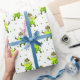 Unique St. Patrick's Day holiday giftwrap featuring funny cat dancing the Irish jig surrounded by shamrocks.