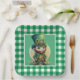 A Beautiful Green Gingham Plaid Square Paper Plate With Adorable Irish Gnome For St. Patrick's Day