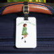 well made; although leather luggage strap may not be sturdy enough of airline checked luggage; my wife can attach this luggage tag to her purse or "bag" so that fellow shoppers can see she is a dog lover. did not customize; graphics were adorable