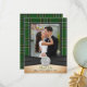 You can personalize the text and photo on this Irish National tartan Claddagh Celtic wedding photo flat thank you card. The text above the Claddagh says "Lucky in Love". There is also a celtic love knot and shamrocks. The colours are mostly green and black on a aged parchment look. Perfect for an Irish or St. Patrick's Day themed wedding. Reconnect with your Irish celtic roots with a tartan wedding theme. This would also be a nice photo thank you card for an anniversary party. The text and photo on this card is fully customizable. You can change the text and photo using the personalize option. For more extensive changes, such as font, font colour, photo size, photo placement, or text layout/placement, use the customize it option. Note: This is a flat printed design with no raised or 3D embellishments.