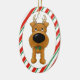Humourous big nose Irish Terrier Christmas ornament. Irish Terrier is in antlers and holding mistletoe in his mouth.