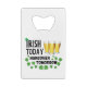 La Saint Patrick est la fête où l'on s'attend à se lâcher et à s'amuser ! Partagez votre esprit de vacances et profitez d'une boisson de votre choix grâce à cet ouvre-bouteille festif. Il présente l'drôle de phrase "Irish Today Hungover Tomorrow" dans une police noire entourée de trèfles verts, d'un casquette leprechaun, et de grandes verres de bière dorée. Grand cadeau pour vos amis et votre famille irlandais ou même une fête amusante faveur. Buvez et soyez joyeux ! Disponible également dans une police blanche.