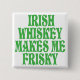 This funny St. Patrick's Day design features the slogan "Irish Whiskey Makes Me Frisky" in large green text.